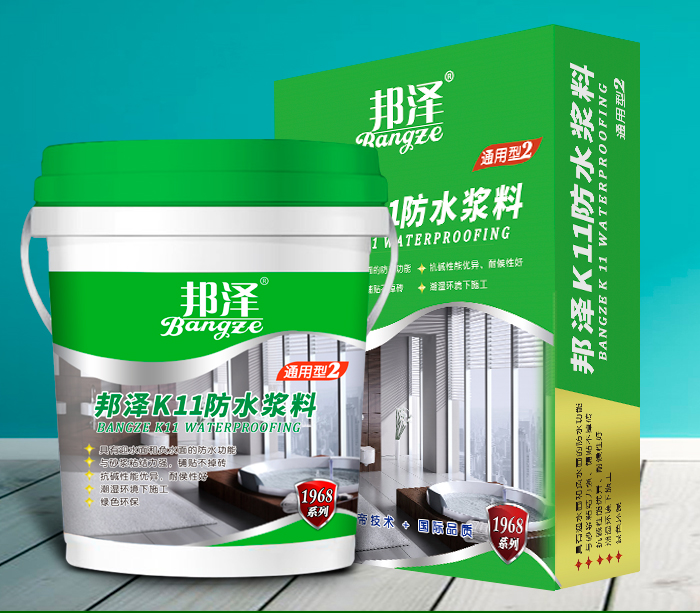 邦澤K11防水漿料通用型采用精選原材料,運用勁帝新的環(huán)保防水漿料技術(shù),是一種為家居廚衛(wèi)裝修設計的防水材料。粉類是由精選水泥、精選石英砂及獨特高分子聚合物組成;添加劑是聚合物乳液。攪拌后涂刷在底材上,與底材形成一體的枝蔓狀結(jié)晶體,從而達到一定的防水效果。