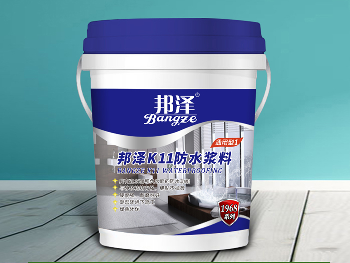 邦澤K11防水漿料通用型采用精選原材料,運用勁帝環(huán)保防水漿料技術(shù),是一種專門為家居廚衛(wèi)裝修設(shè)計的高效防水材料。粉類是由精選水泥、精選石英砂及高分子聚合物組成;添加劑是優(yōu)質(zhì)的聚合物乳液。攪拌后涂刷在底材上,與底材形成一體并生成不被水滲透的枝蔓狀結(jié)晶體,從而達到一定的防水效果。